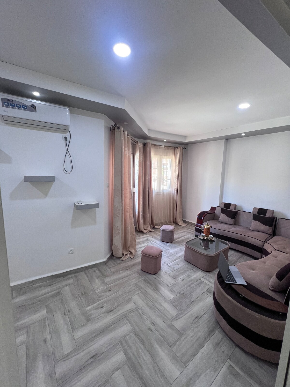 -APARTAMENTO en la planta baja elevada en el barrio «camp chevalier» en Jijel -8 PLAZAS PARA DORMIR, 1 cama doble, 2 camas individuales, las 2 «camas» de la sala de estar se pueden cambiar por la noche para poder dormir en ellas, +2 colchones extra si es necesario -APARCAMIENTO enfrente -WIFI INTERNET -ELECTRÓNICA microondas, horno, placa eléctrica, tostadora, hervidor de agua, cafetera, lavadora, secador de pelo 2 aires acondicionados ... -LA PLAYA a 5 - 10 minutos en coche -Cerca de la ciudad y de todas las comodidades