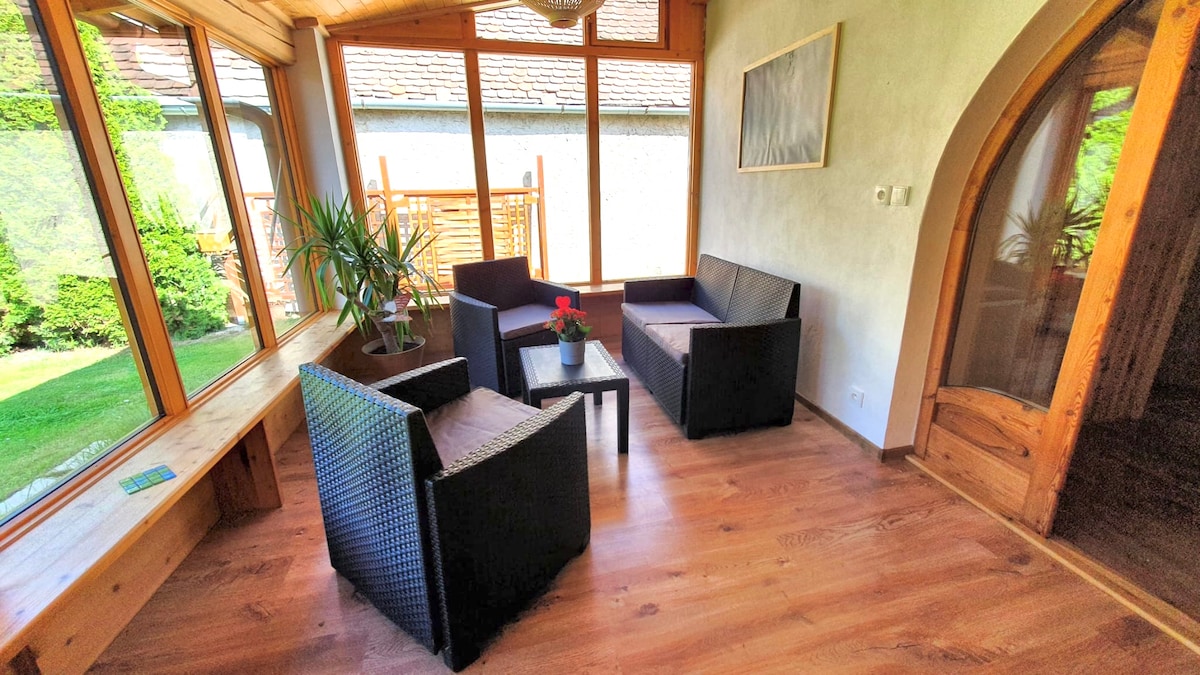 38 helle und gemütliche Quadratmeter mit eigenem Eingang, geschützter Gartenbereich, Sauna, Tischtennis, wandern im Gänsgraben zur Heidenstatt ... Fahrräder für die Heurigenfahrt, Boote für Fluß und See und gibt's von uns frei. Und Josephsbrot, die wirklich gute Bäckerei mit Cafe gibts im Dorf! Susanne ist Jugendcoach. Ich betreibe als Spiegelmacher Österreichs letzte traditionelle Spiegelwerkstatt. Wir freuen uns auf euch!