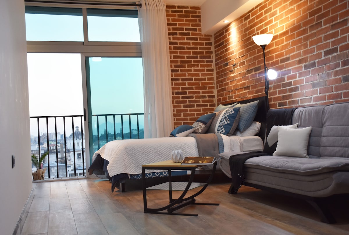 Este acogedor loft te permite tener la comodidad y ubicación ideal para tu estadía. Cuenta con todos los servicios y un balcón con hermosas vistas. A solo unos pasos puedes encontrar variedad de restaurantes (¡ incluso en el mismo edificio !), cafés bares, edificios y monumentos históricos, mercado de artesanías. La buena ubicación te permite tener fácil acceso a todas las zonas de la ciudad y en 15 minutos puedes llegar desde el aeropuerto internacional La Aurora, tomando un Uber o taxi.