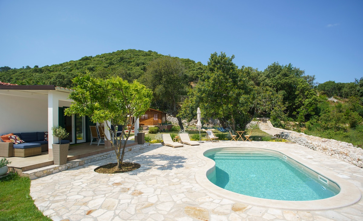 Welcome to Korcula island! Our beach holiday house is situated in a small bay surrounded only by nature and sea (6 km from Korčula town - 10 minutes drive). The house consists of 2 buildings (bedroom and bathroom in each one) with a private swimming pool. FREE! 2 kayaks (4 persons), 2 SUPs and 2 bikes for exploring the island and sea adventures.